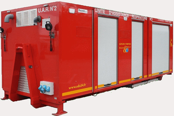 - Apporter une réserve de bouteilles d'air comprimé respirable et remplir les bouteilles d'air des appareils respiratoires isolants (ARI) dont se munissent les sapeurs-pompiers pour pénétrer dans la fumée ou les gaz toxiques.